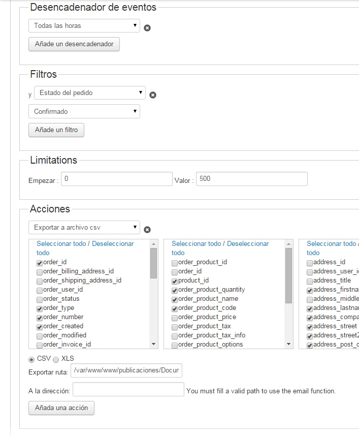 Then I saved the mass action, and wait 2 hours. I expect 2 diferent files, but nothing happend. No files was saved.