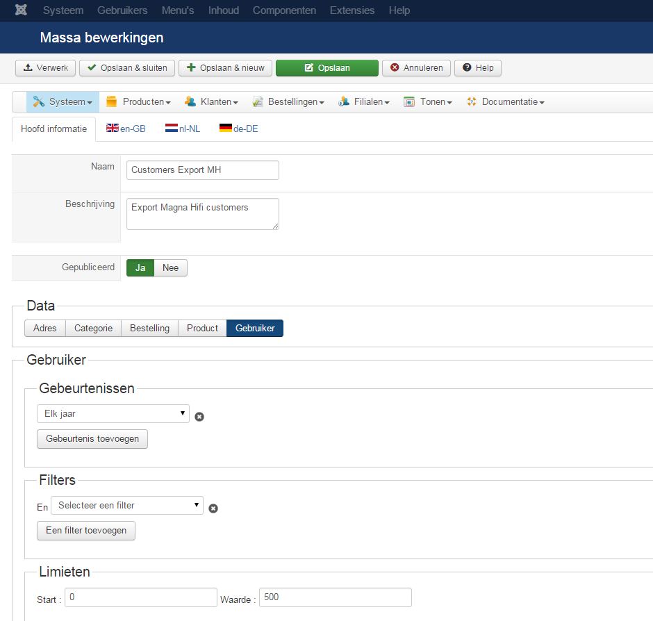 If you reduce the quantity of elements to be treated in the "Waarde" field, do you still have an error ?