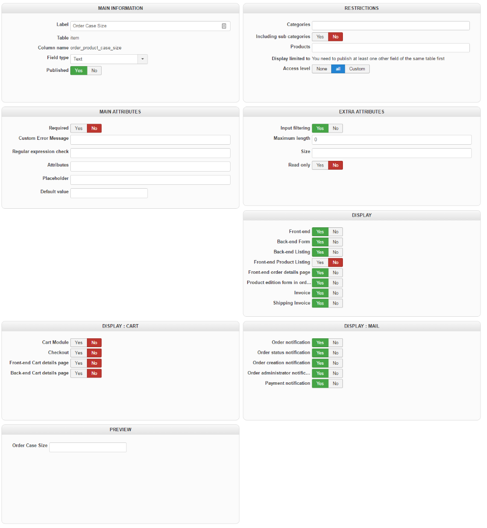Hello, I am trying to setup mass actions to take a value from a custom field in the product table and save it with the order product data in the Order_Product table. I have created a custom field called "order_product_case_size" under the option for table = "item" and I can see the column in the database in the right table. Below is the screenshot of my mass action settings (which I am sure are not right).