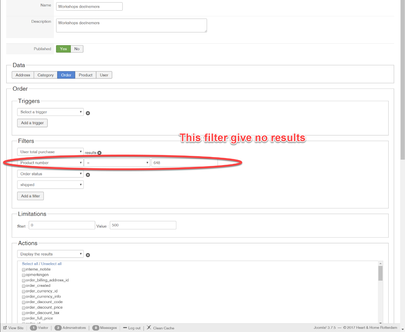 I have set up a mass action to find out who bought a product (in this case a workshop).