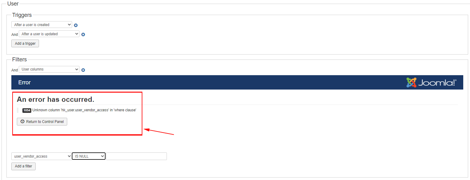 You have a SQL query taken from an error that shows when creating a mass action. I do not know if this is related to something. I am not the component developer.
