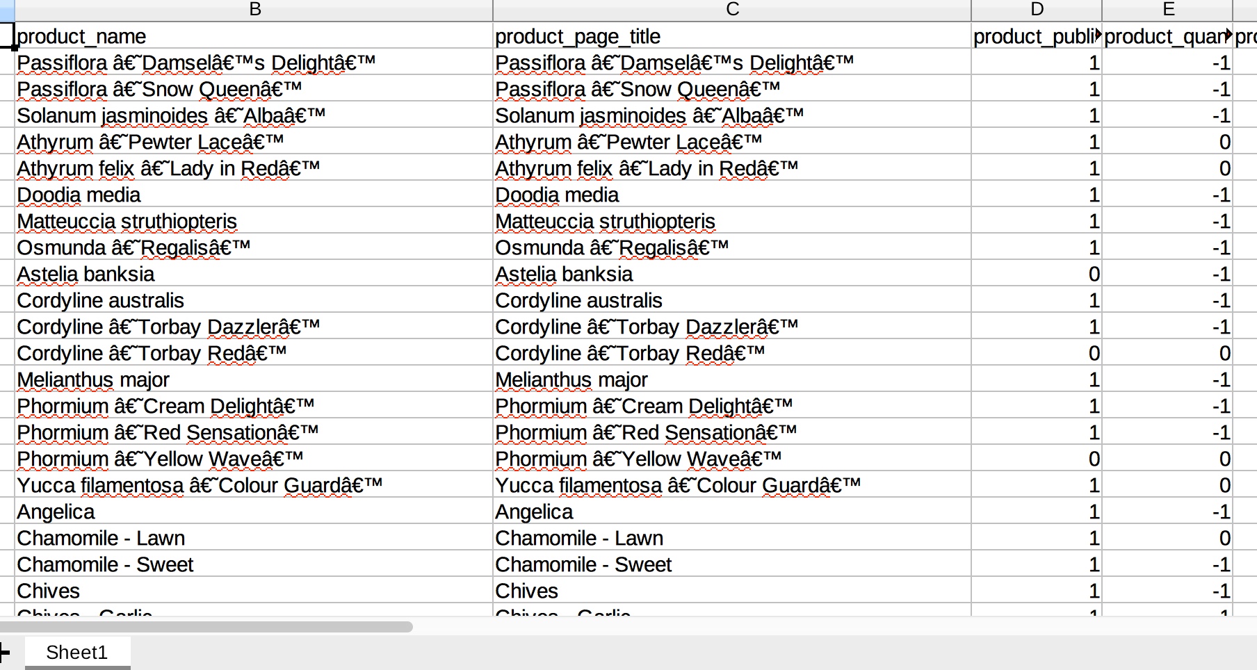 Strange characters in 'product names' for Create XLS option