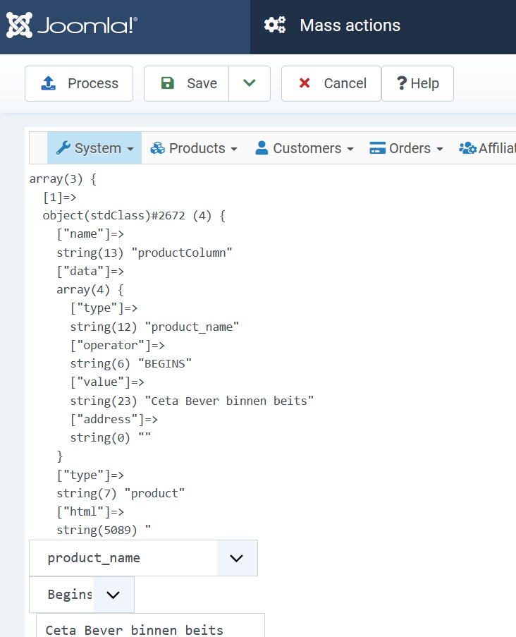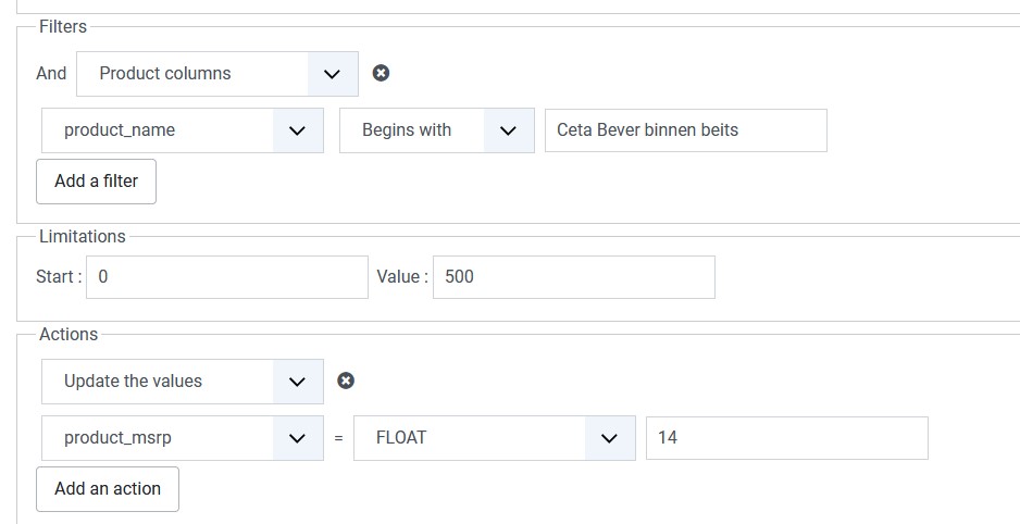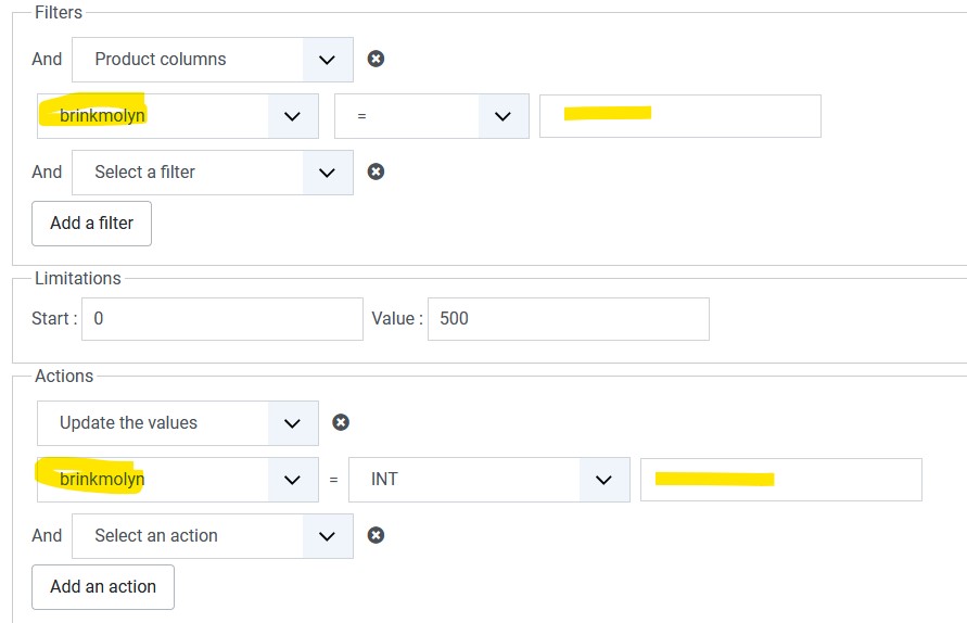 When trying to ad a second filter of action, the first filter / action is replaced. I have this behaviour in Google Chrom and Firefox. There is no javascript-error in the console, and when saving the mass action first before adding a filter / action does not help.