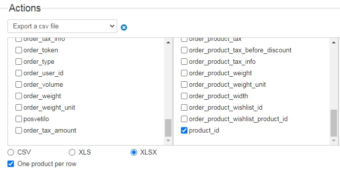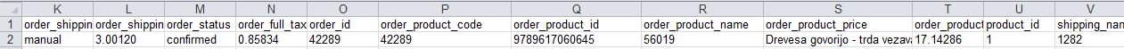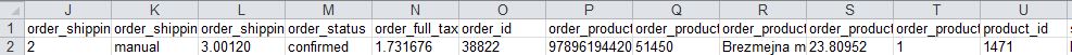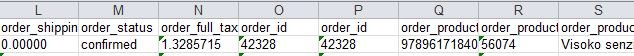 When you export an order without any products, the first one will have the id of the order while the second one will be empty.