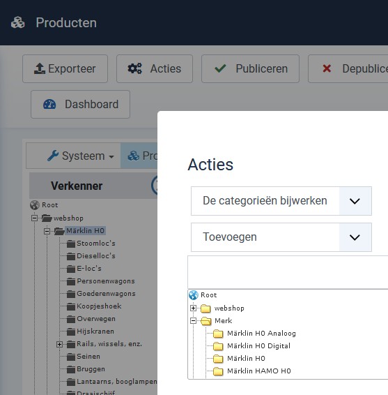 In the product listing I select one or more products, go to mass actions and choose to edit the categories.
