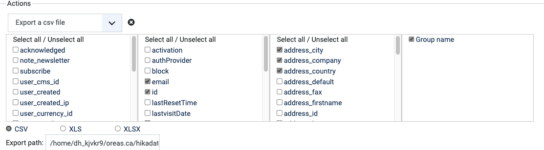 In MassActions it is possible to DISPLAY the usergroup information but not when exporting.