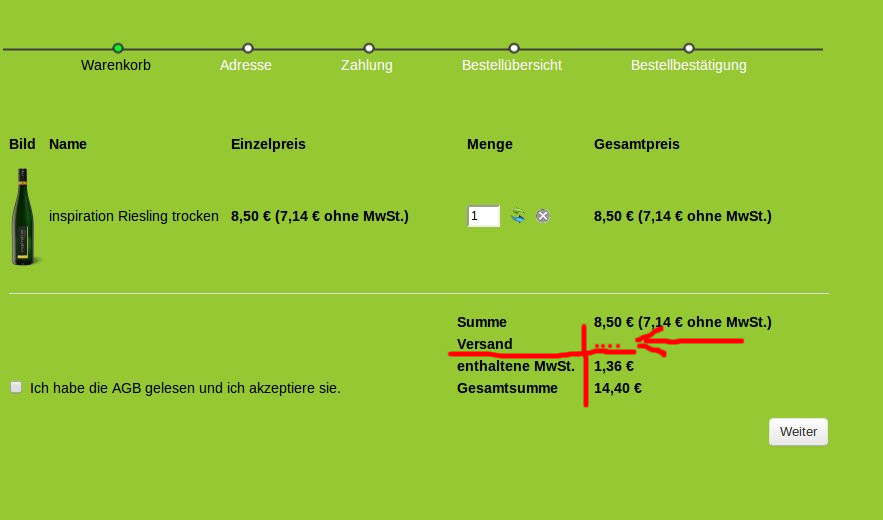 Also, the Shipping costs are not printed out on screen during the order process in frontend (while being calculated).