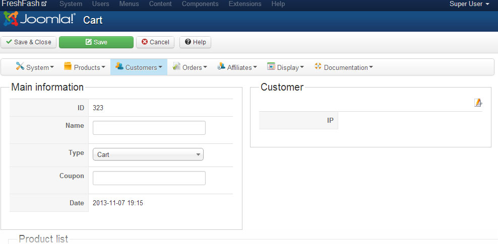 Finally, you will have to edit the view "cart / form" in the backend template to display the cart value instead of the user one for the IP.