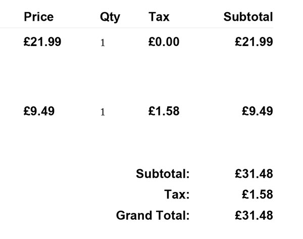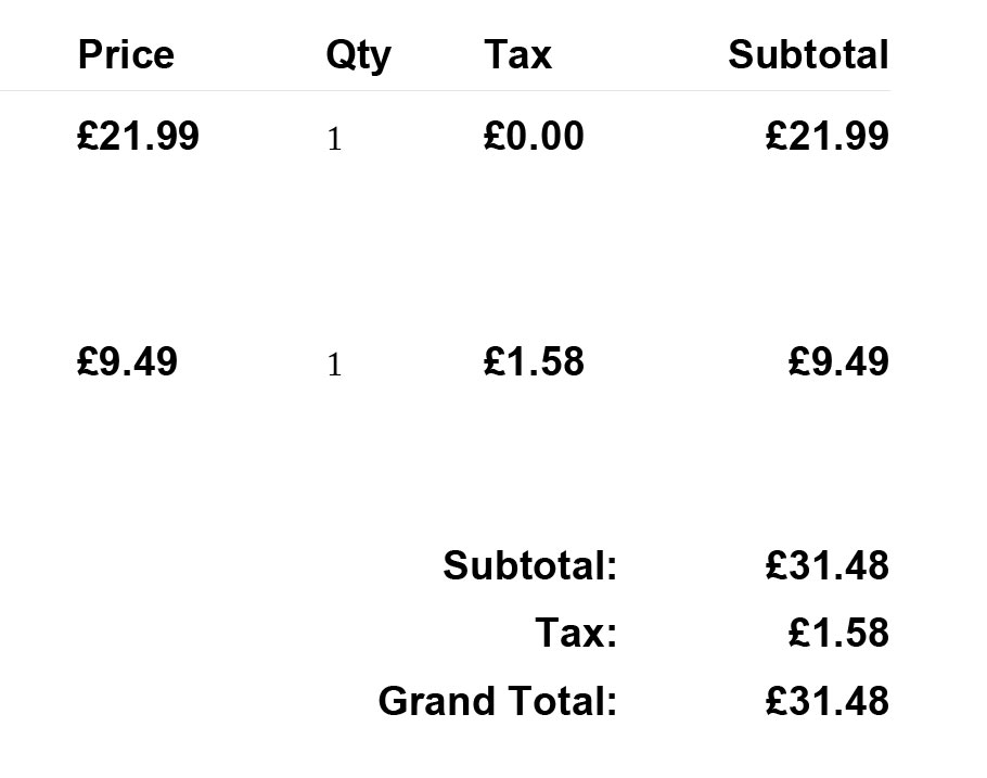 Product invoices need to clearly show what has and hasn't bee charged VAT/TAX. as per this example at the HMRC website.