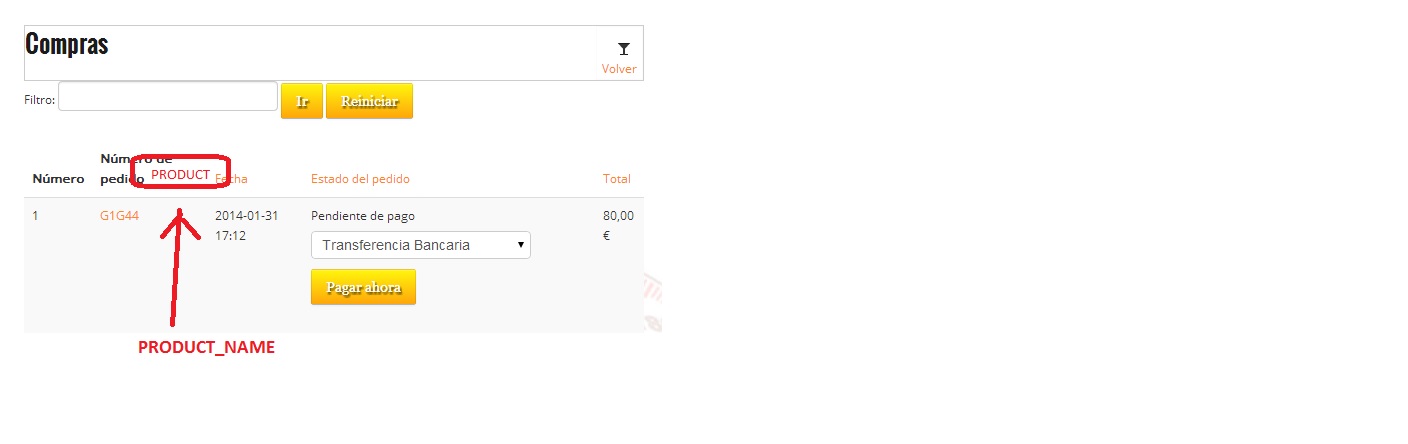 Show product name in listing orders user panel