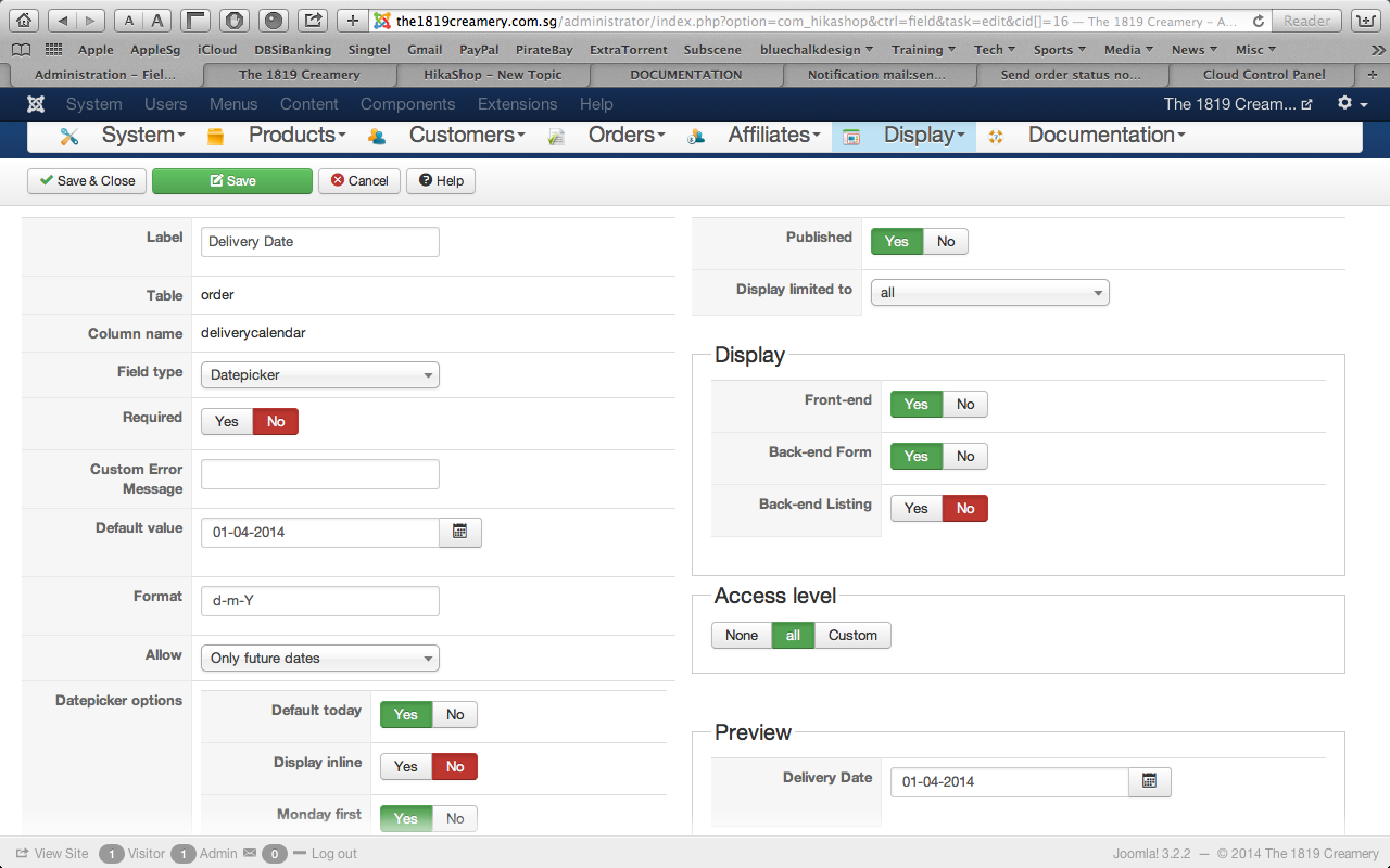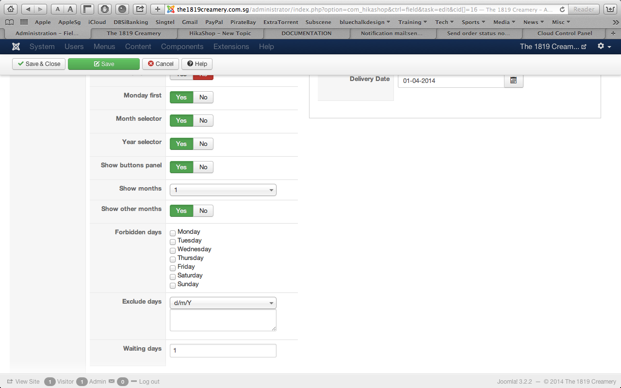The settings of the Date Picker custom field is shown in Screen Shots A & B.