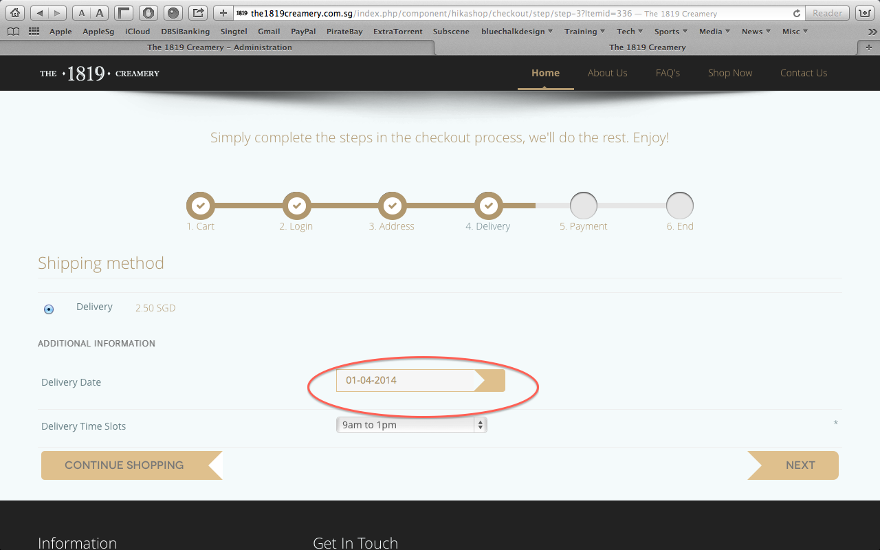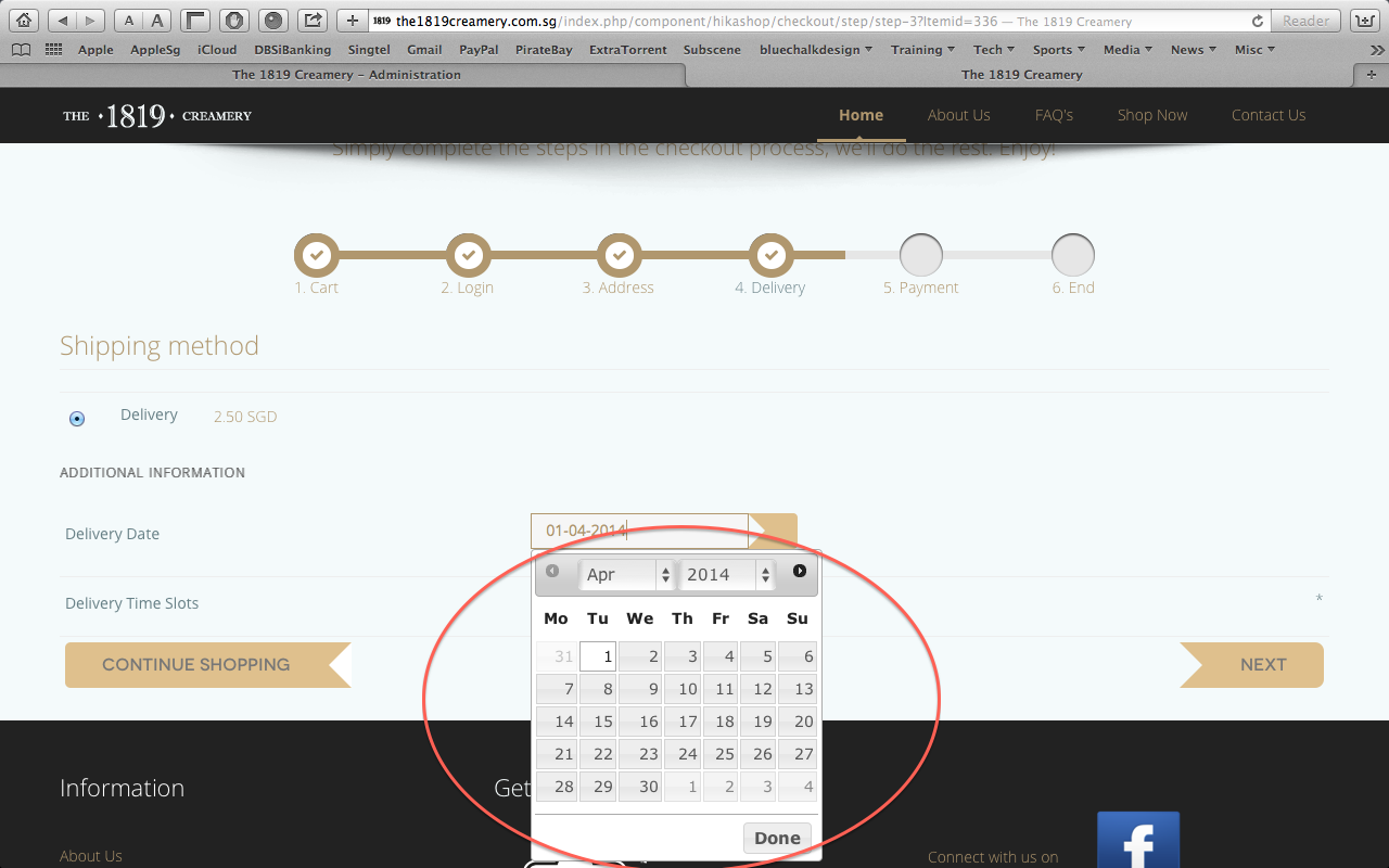 1. At the delivery date selection page during checkout, the default date is already displayed in the field. (Screen Shot 1)