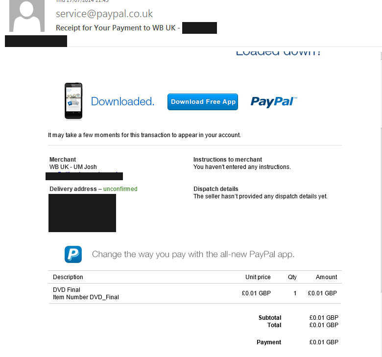 I received 4 emails, two to the email account that I'm registered to on the website and 2 sent to my email that is registered with my paypal
