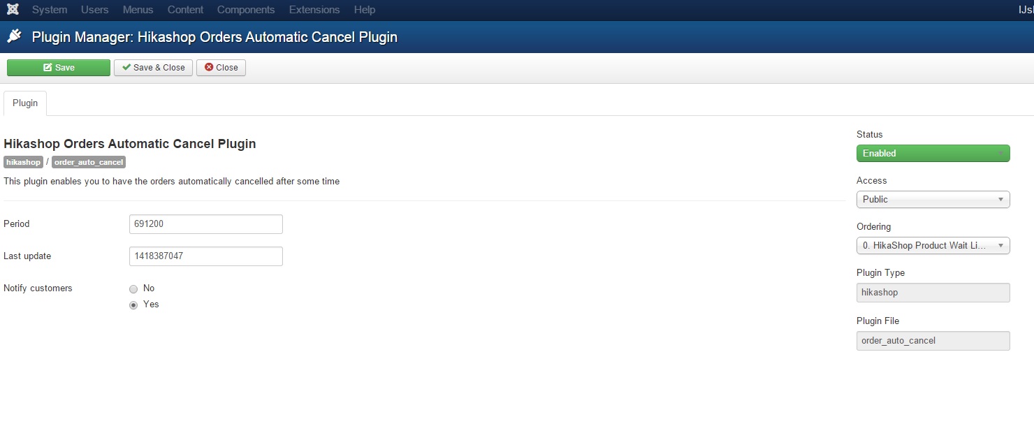 if(!empty($plugin->params['last_cron_update']) && $plugin->params['last_cron_update']+900>time()){in the plugin file plugins/hikashop/order_auto_cancel/order_auto_cancel.php and it will work like you want.