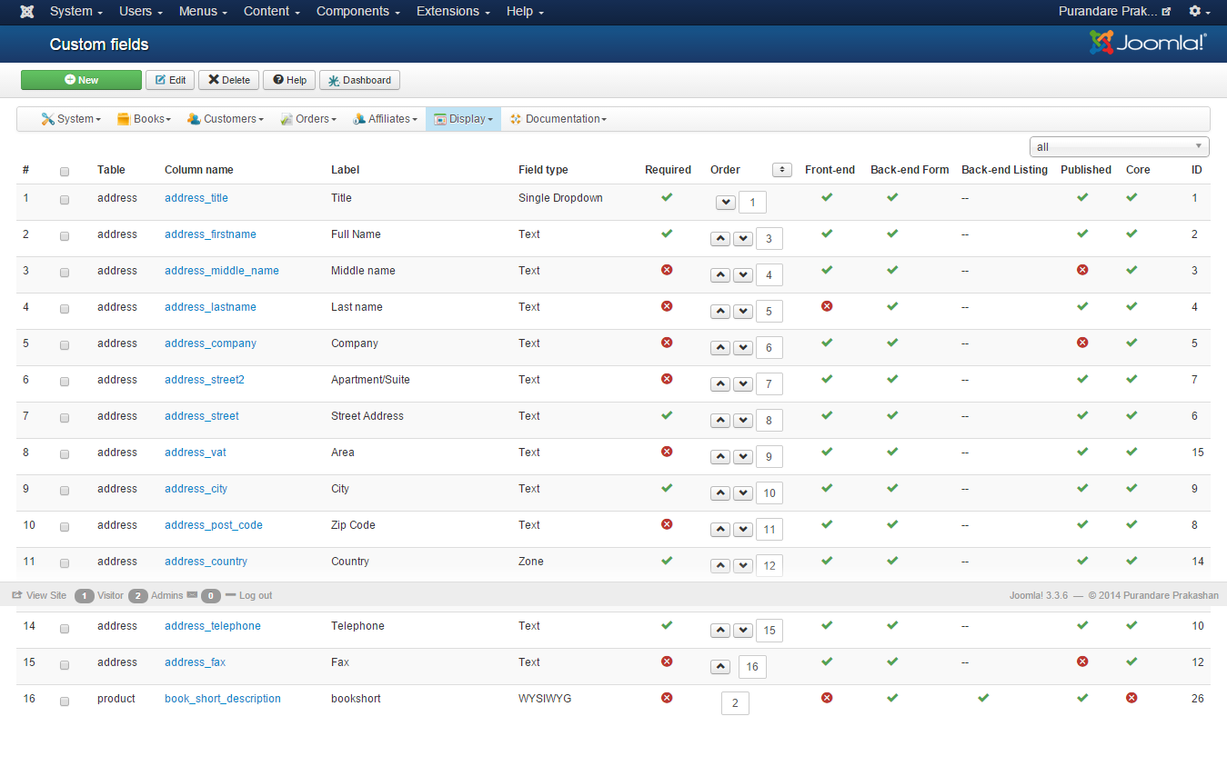 1) Please provide screenshot of the custom fields as you requested