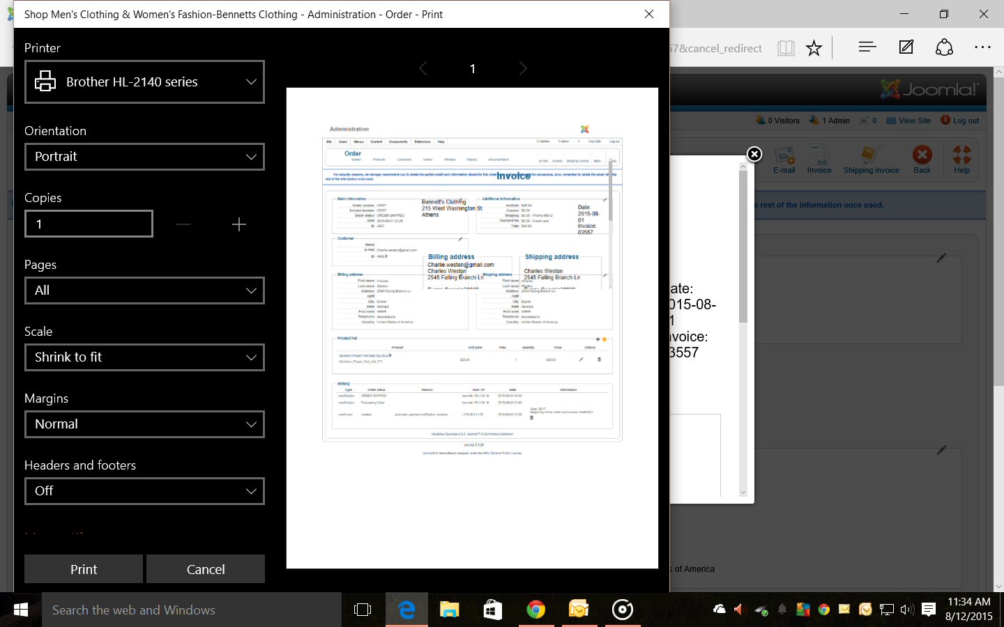 Windows 10 upgrade and now cant print invoices correctly. The invoice is all jumbled up. Have also tried in Chrome and it will print in correct format but is so enlarged that it produces 3 pages.