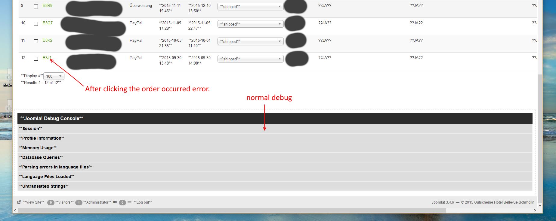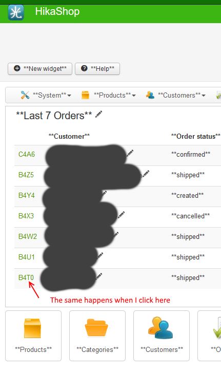 Component HikaShop: Since about two weeks of calling the individual orders will not be parsed.