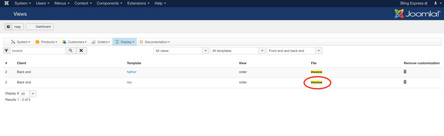 } ?>in the file "invoice" of the view "order" via the menu Display>Views