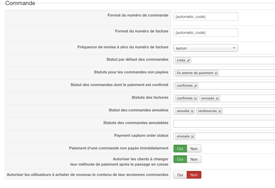 Concernant les numéro de factures, ils sont uniquement créés quand les commandes passent dans un statut listé dans l'option "statut des factures". Donc non, les numéro de factures sont uniquement créés après le paiement, lorsque les commandes sont confirmées.
