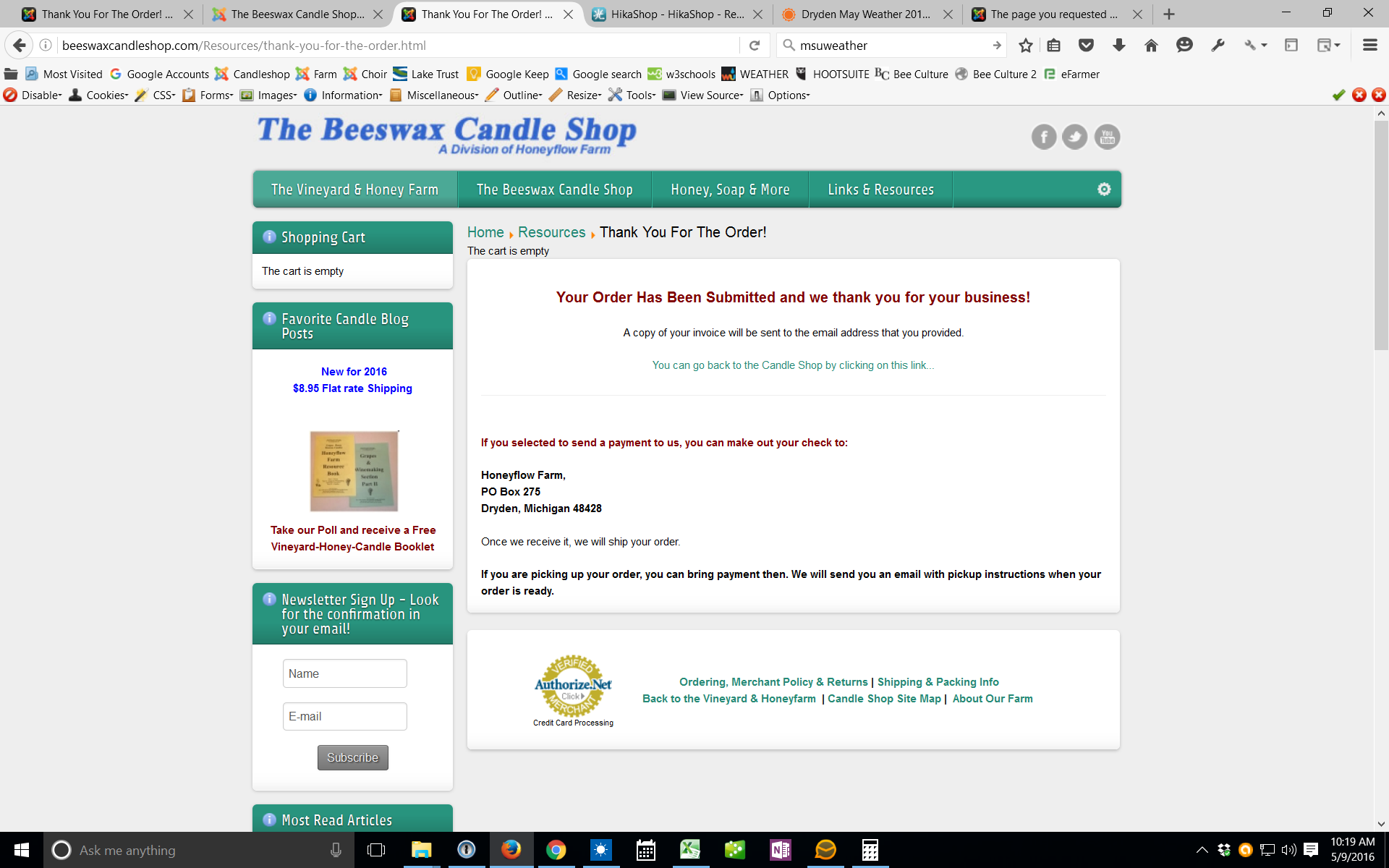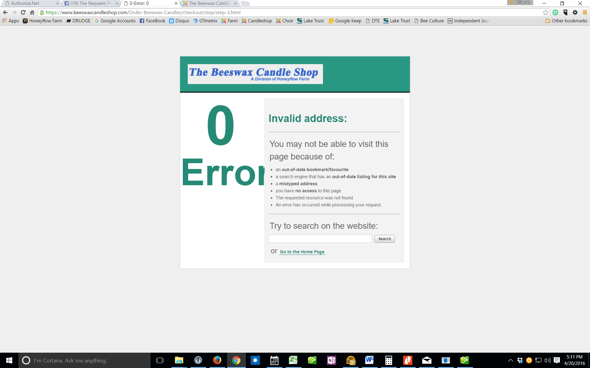 Issue 1 = when someone checks out and submits their order, they get this message: