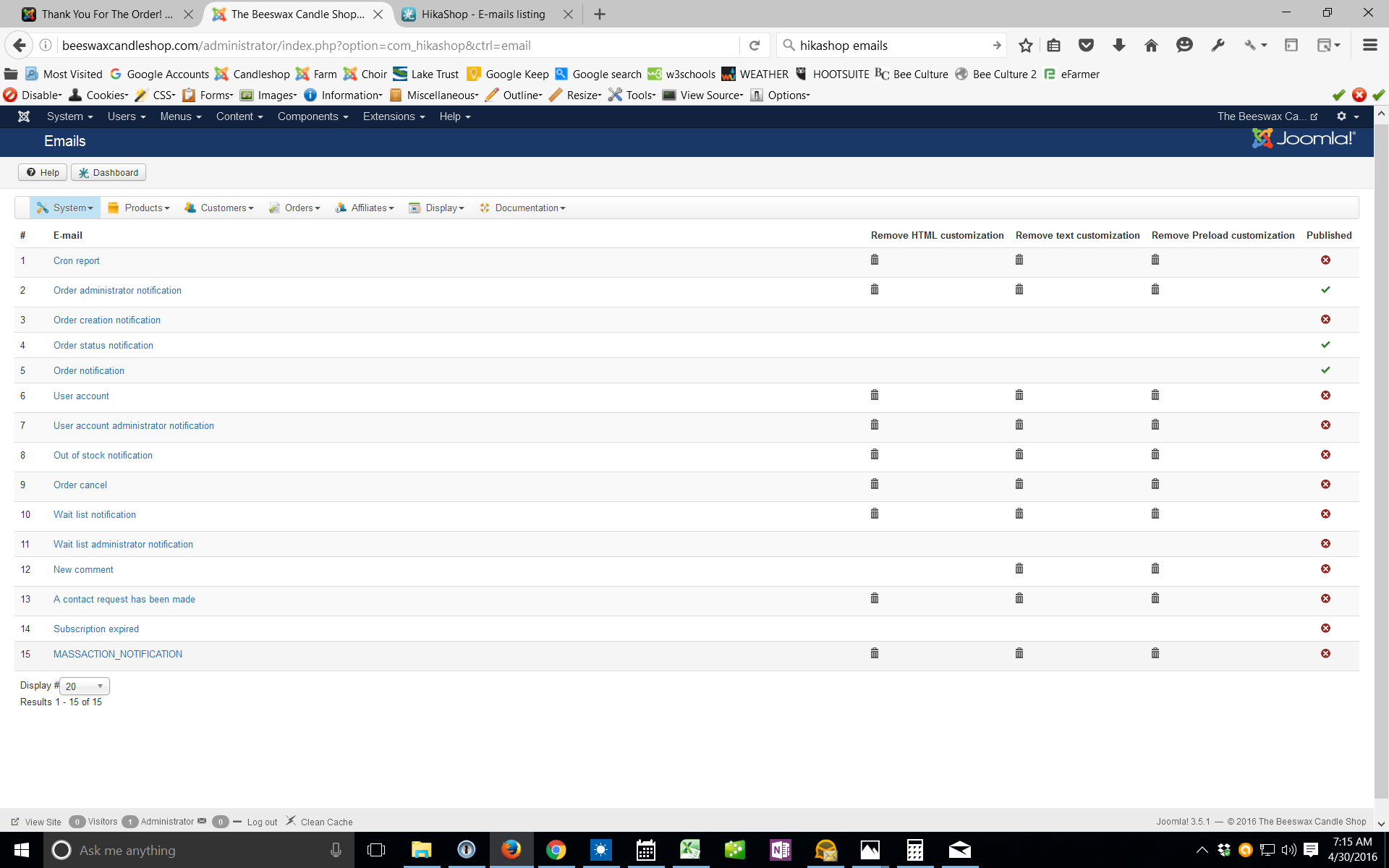 We seem to have developed some severe ordering problems. I do not know if this is the cause, but we recently updated joomla to 3.5.1 and hikashop to 2.6.2