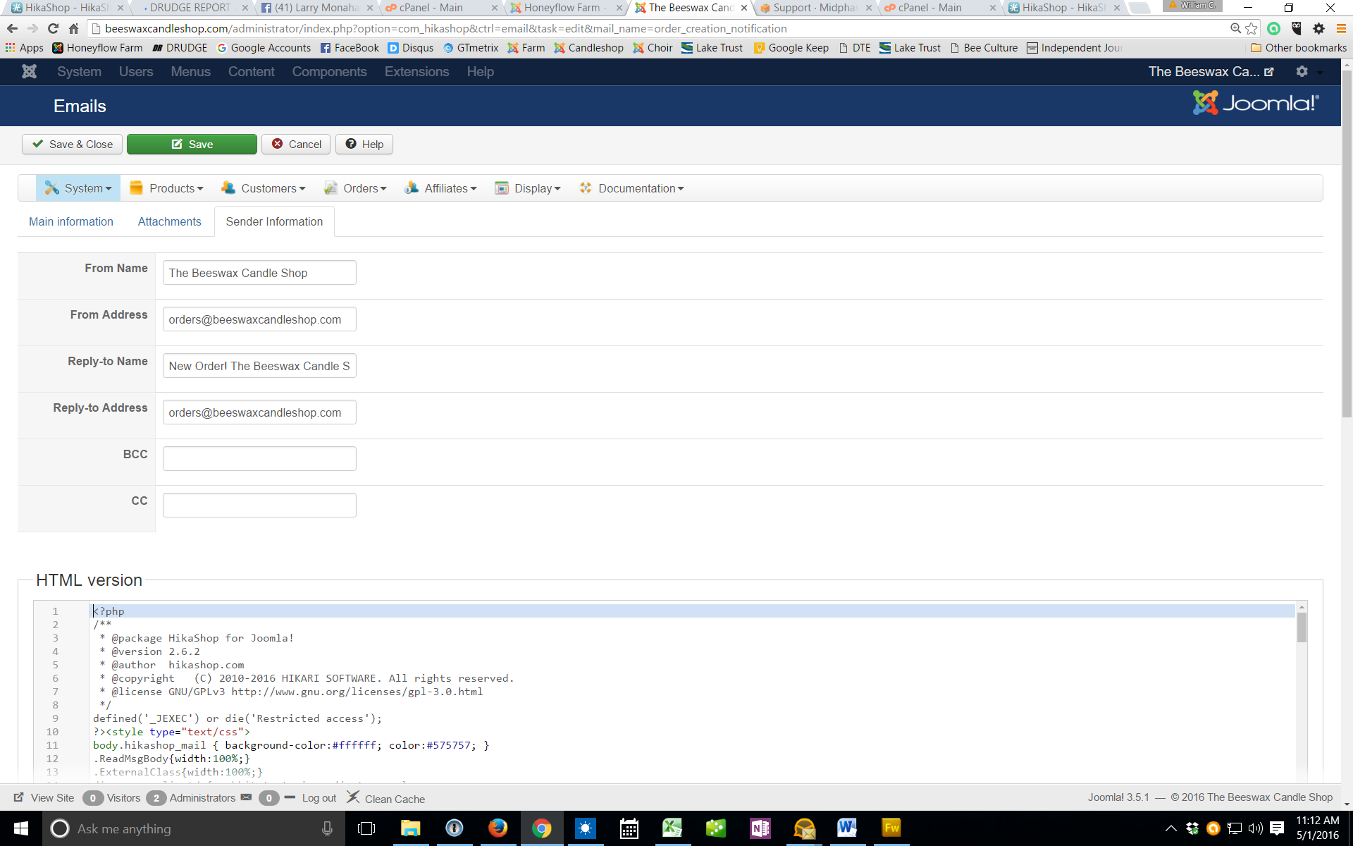 -- Joomla version -- : 3.5.1