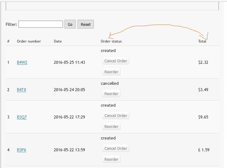 Hi, attached a screenshot. I would just like to swap positions in the user control panel , hence the buttons for reorder and cancel at the end. Thanks for your quick help. Shop is going live soon now.