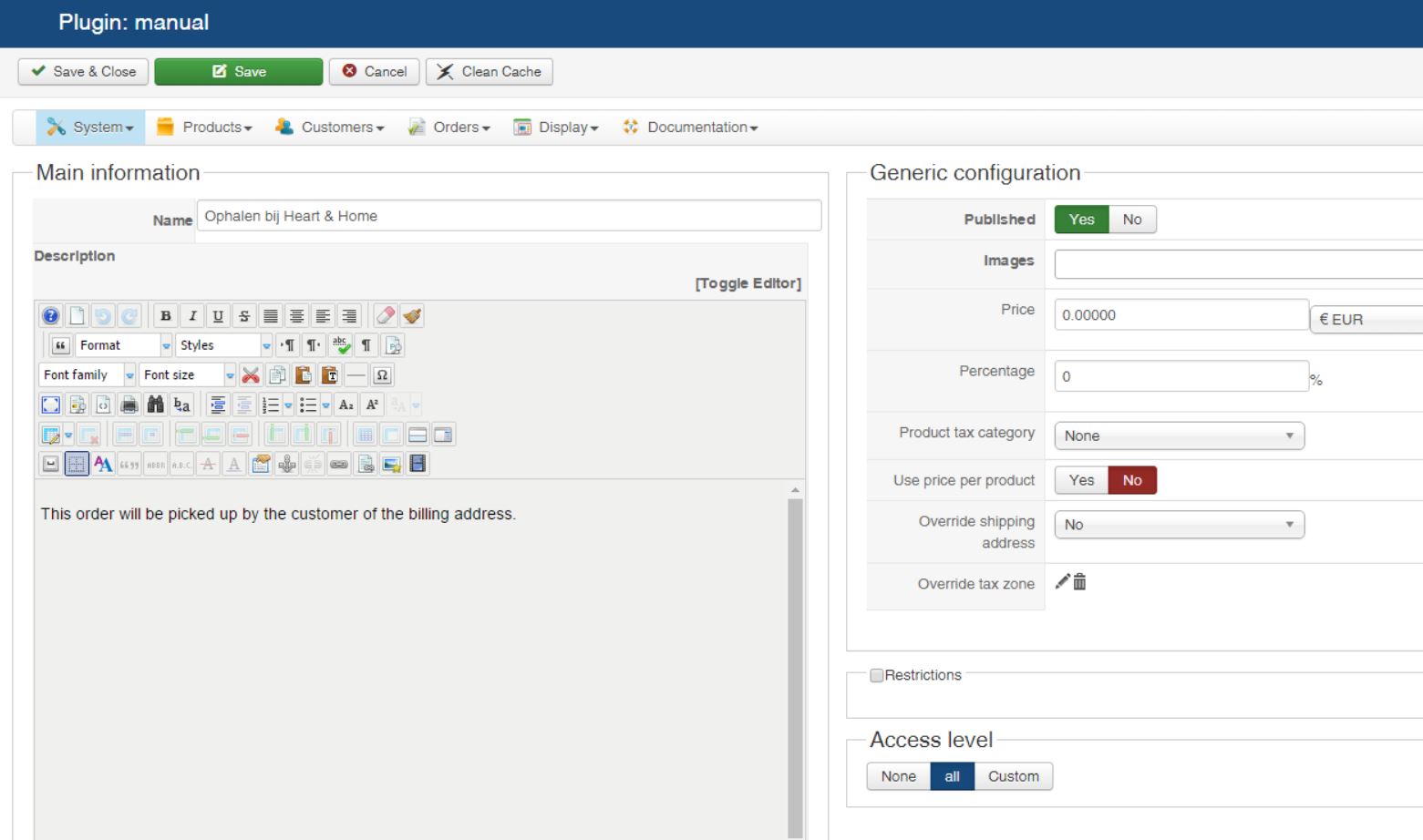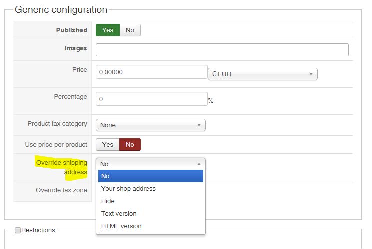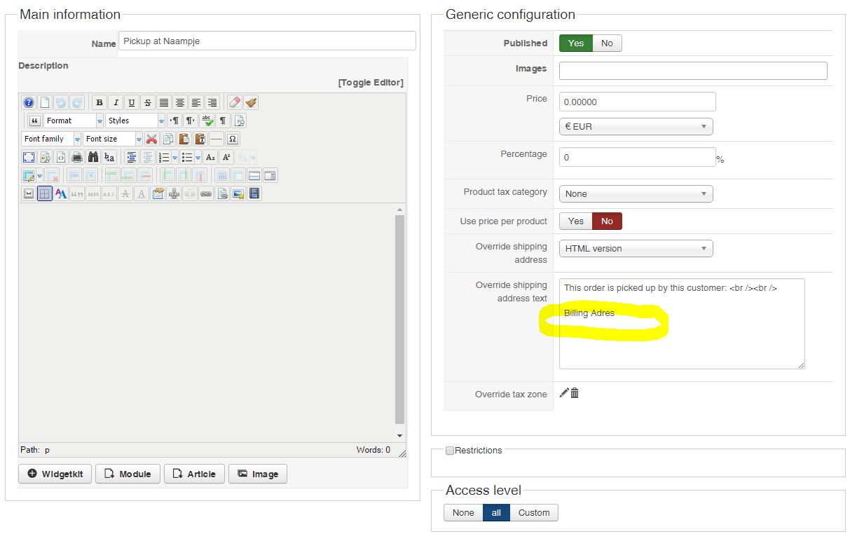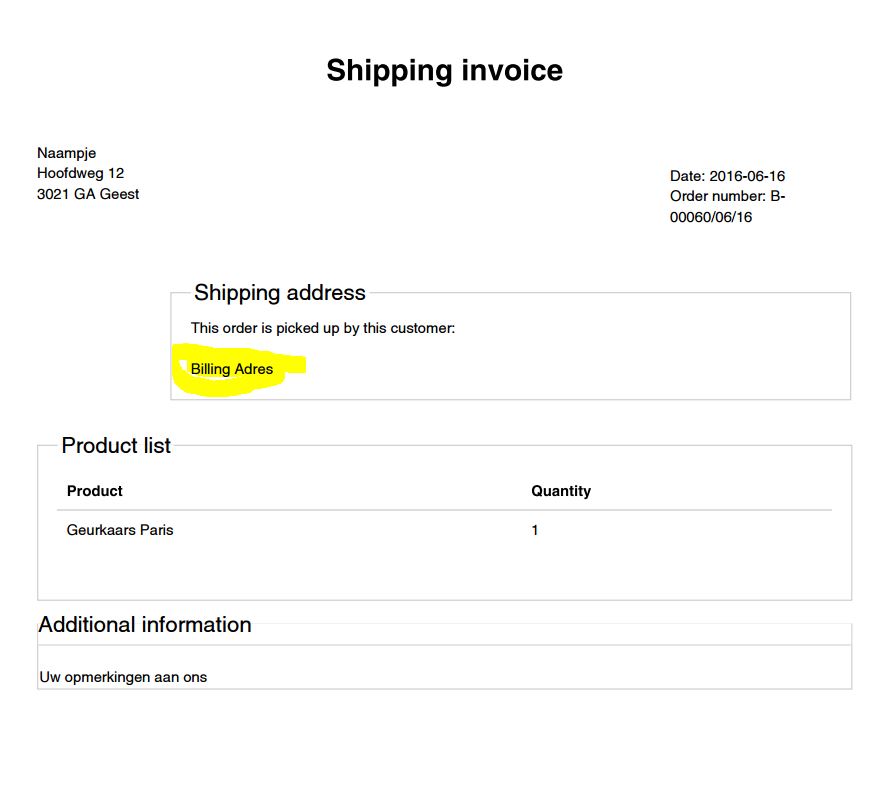 Then, you can just put the text "this order will be picked up by the customer of the billing address", which will be displayed on the left of the shipping address.