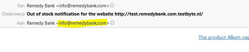 I get a out of stock e-mail notification but not on the right e-mailadress.