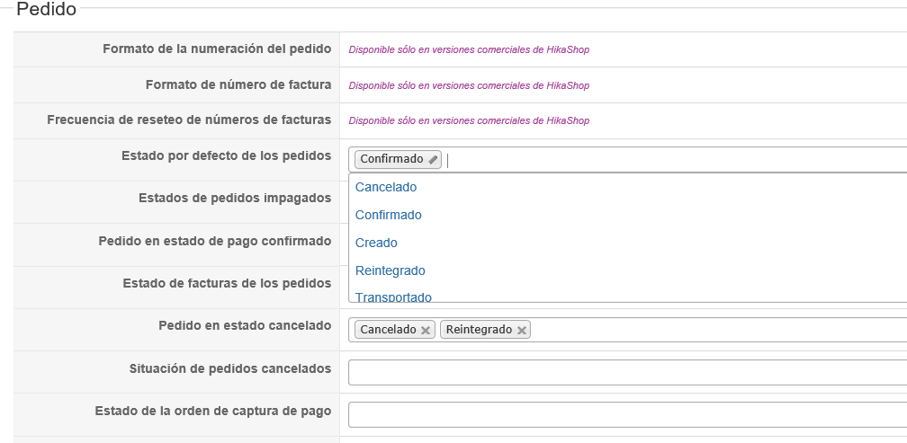 "Confirmado" is just the translation of the order status in your language but is not the identifier used by the HikaShop core.