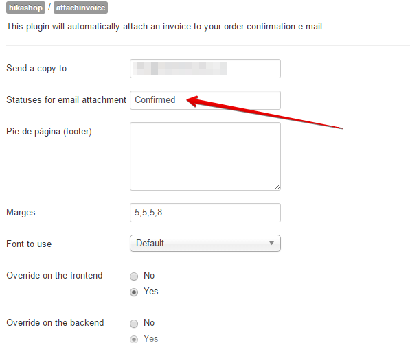 It's in the setting "statuses for email attachment" that you need to enter "confirmed".