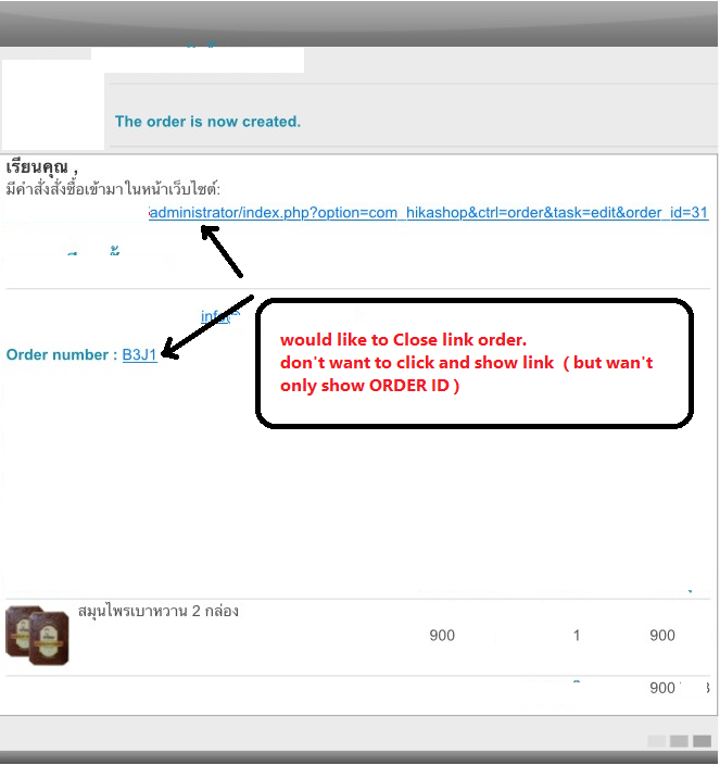 i would like to Close link URL but want show olny ORDER No.