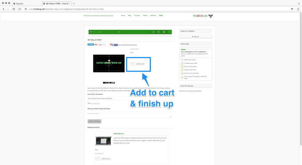 I am attempting to sell tutorials so you might want to return to the tutorial to watch it. This is why I was thinking the way I was. In my innocence I thought that once I had bought a product I could navigate to it via the Hika Products menu. Where I would see NO “Add to Cart” button. Thus clicking on the product would take me to it. In my case video tutorials as seen in the first screen shot below…