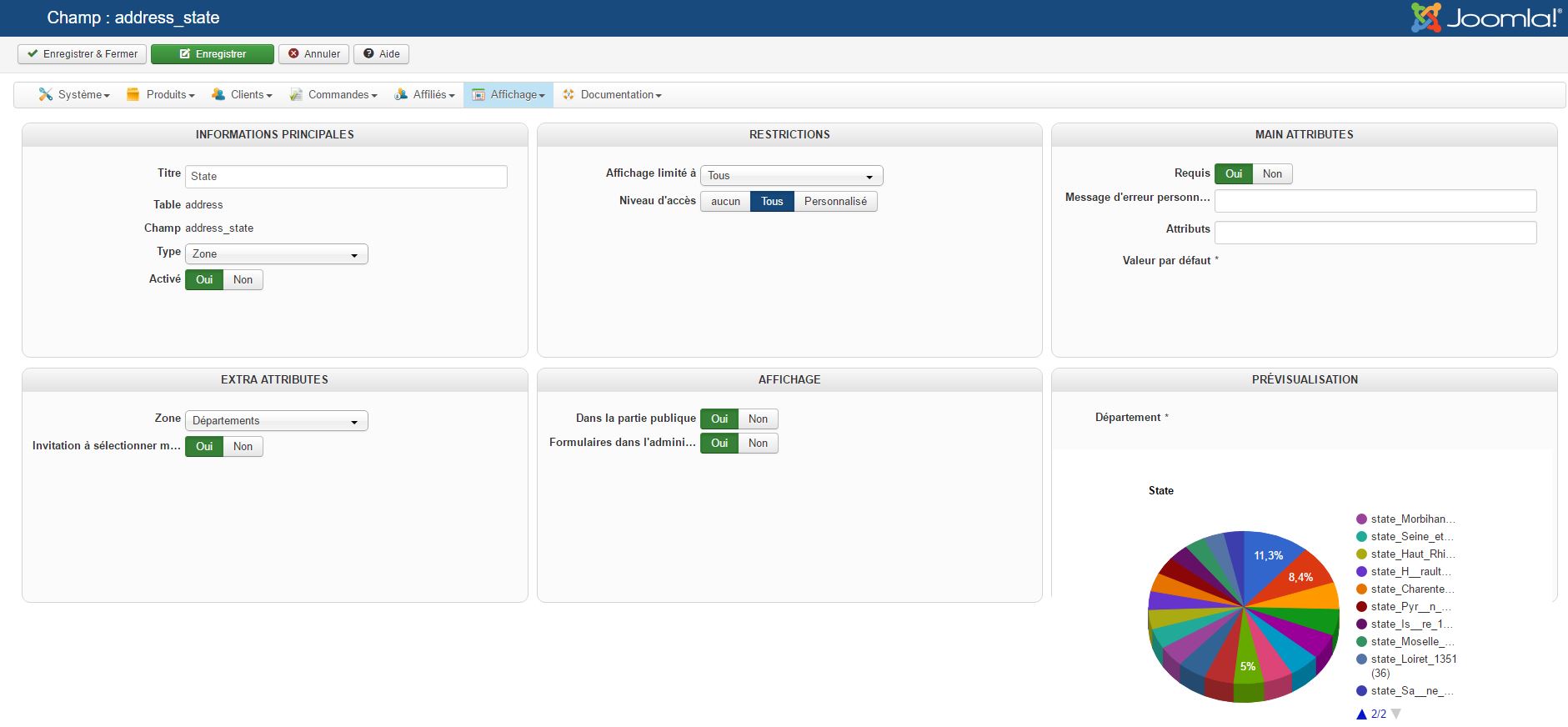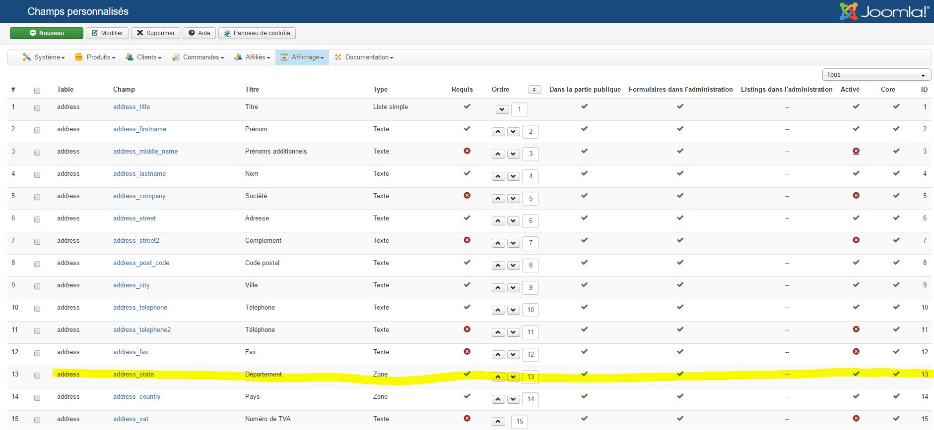 Voici ce que je ne comprend pas. J'ai bien indiqué que je veux voir apparaitre le champ "département"