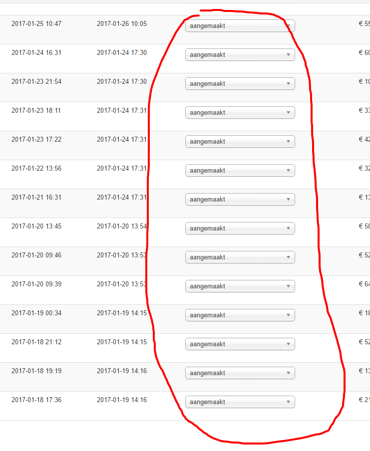 The order history when you open an order is correct, but the dropdown are showing 'created' but then in dutch (aangemaakt).