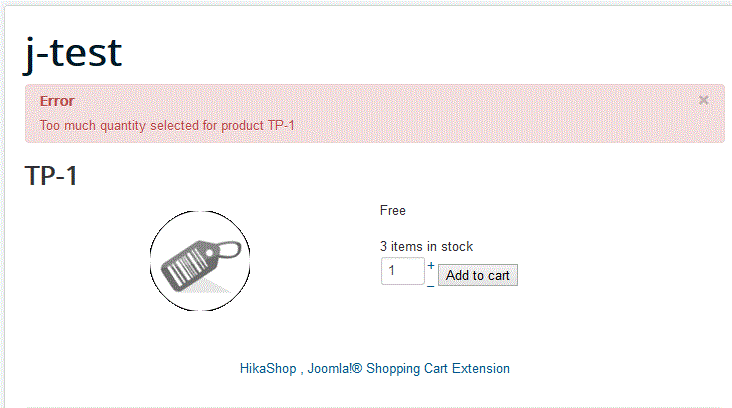 d.) Go to your primary product page, select a quantity of 2 or more and ad it to the cart. The product and the option should go to the cart and this error message should appear "Limit reached. Quantity reduced for product:" (that's the option) There should be 2 or more primary products in the cart and only 1 of the option.