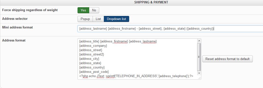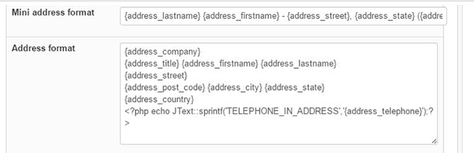 Hikashop default address format ( from the online documentation )