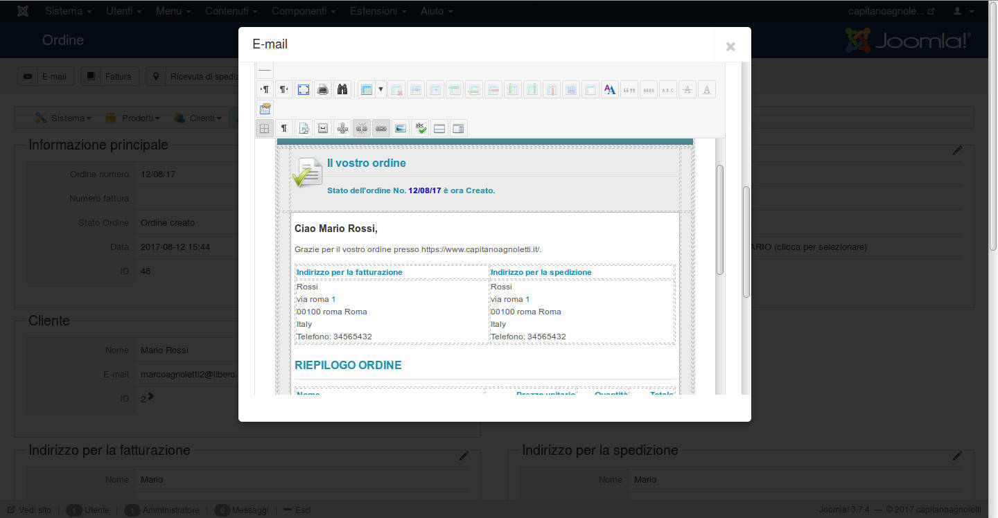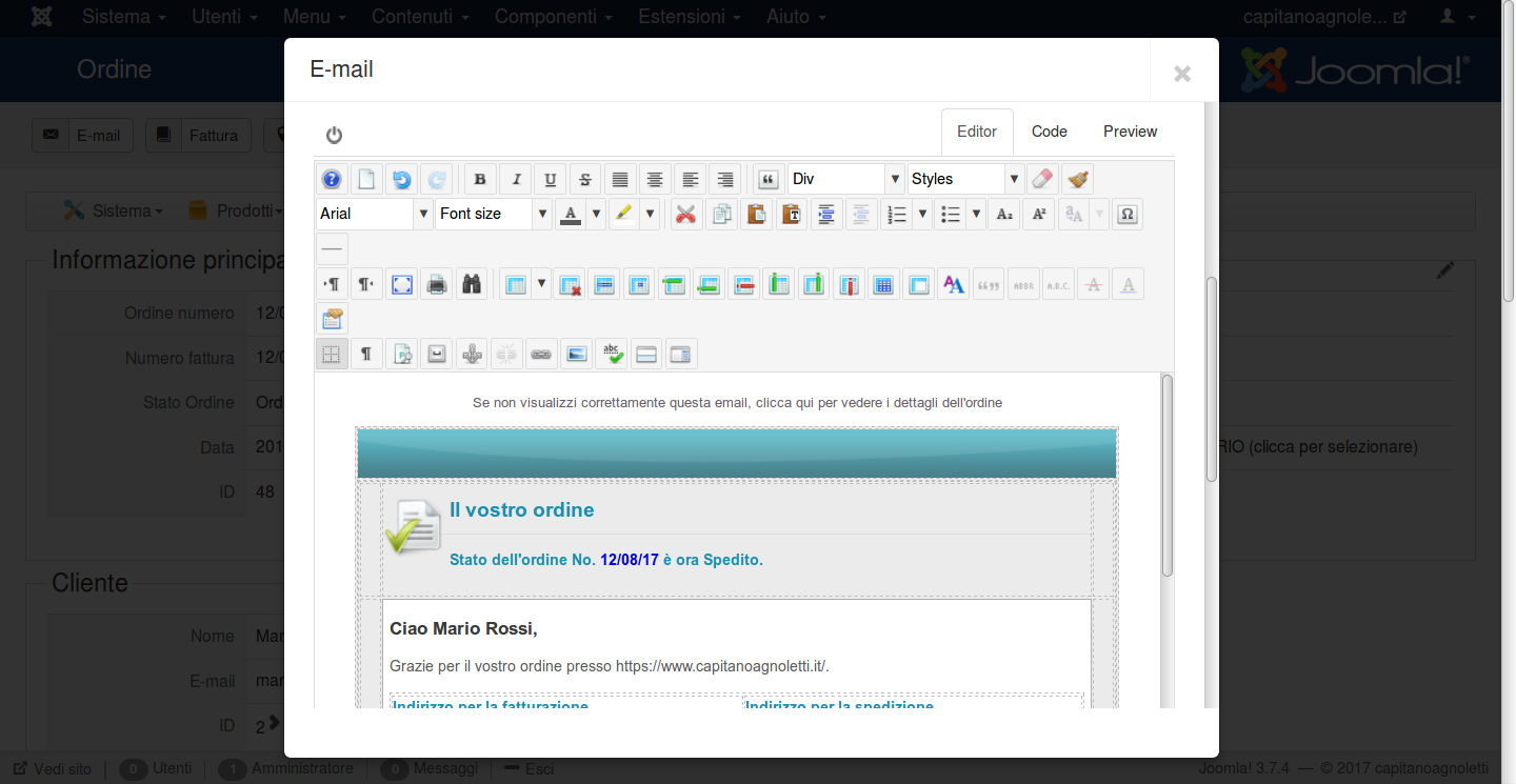 When I enter the order details (attached picture no. 2), after having clicked the box "Email" in the top left corner (attached picture no. 3) I can see the text the customer should receive (attached picture no. 4), but when I click on "Preview" I actually see no text (attached picture no. 4), as it really happens.