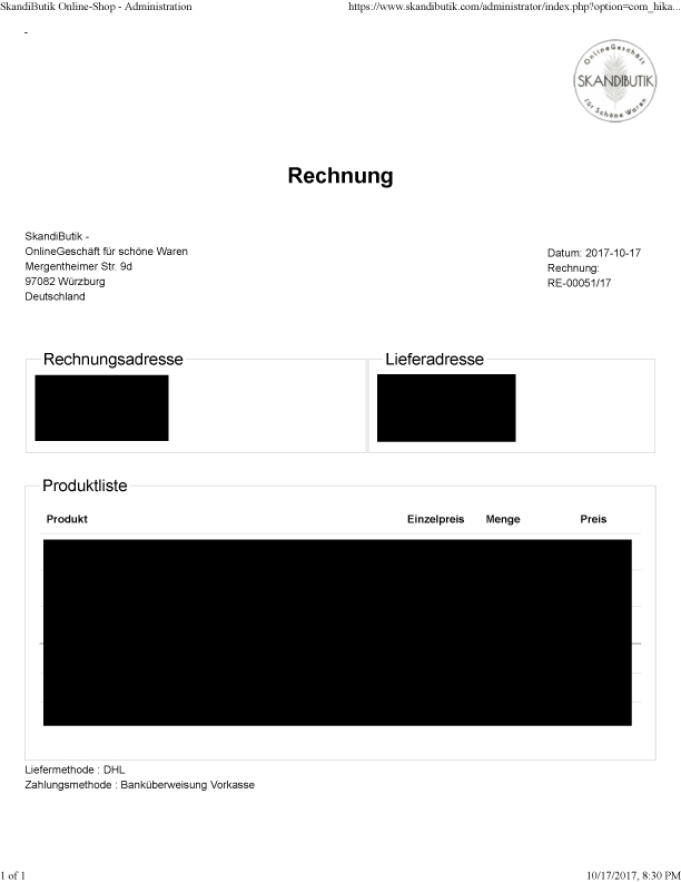 Edit invoice form and print version