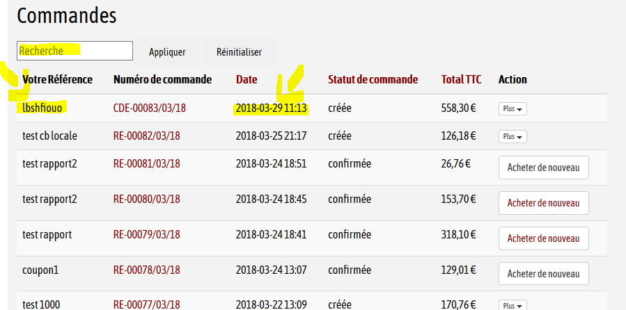 I have created a custom field (custom reference - filed by user on checkout) that is displayed as a column on the order listing for the user in front-end,