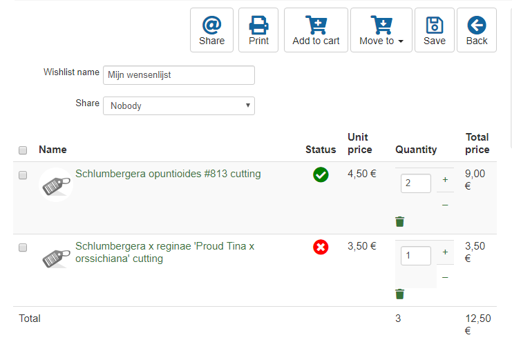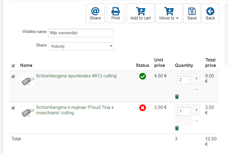 2. When selecting all the items in a wish list inclusing the ones not available pressing 'Move to'- 'Createa new cart' will remove all items from the wish list. Also the cart is not filled with anything. That is not what customers want. Some have up to 20 long wish lists in our case