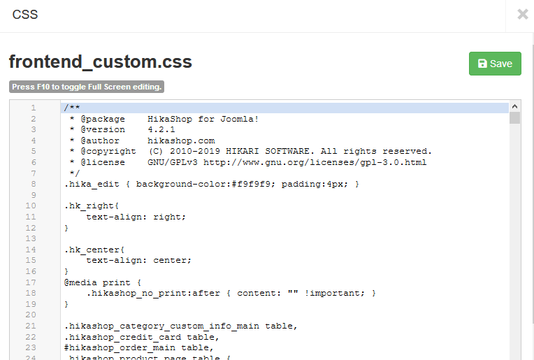 Note that this doesn't require any HikaShop knowledge. You could add that CSS code I gave in the main CSS file of your Joomla template (or any other CSS file loaded on the page) and it would work as well as if you add it in HIkaShop.