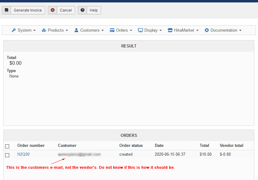 Now the vendor receives payment from customer to his bank account and confirms payment. So the site will create the invoice for the commission that the vendor has to pay to the site. So we go to