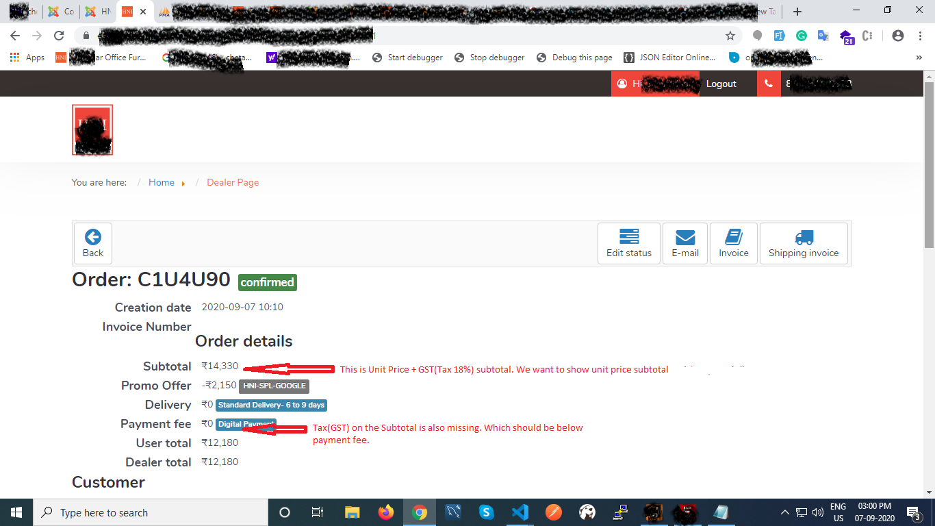 Display issue of order amount and GST amount is on all the screens, backend and in email notifications also.