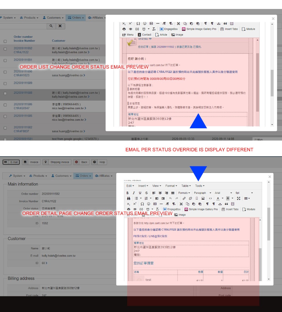 but in order detail page, I change order status and saved it,when I click the email send on top tool buttem.