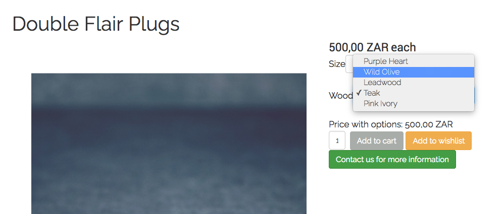 Then, add that wood type product in the "options" setting of the Double Flair Plugs product and make sure that the "group options with product" setting is activated in the HikaShop configuration and it should work like you want.