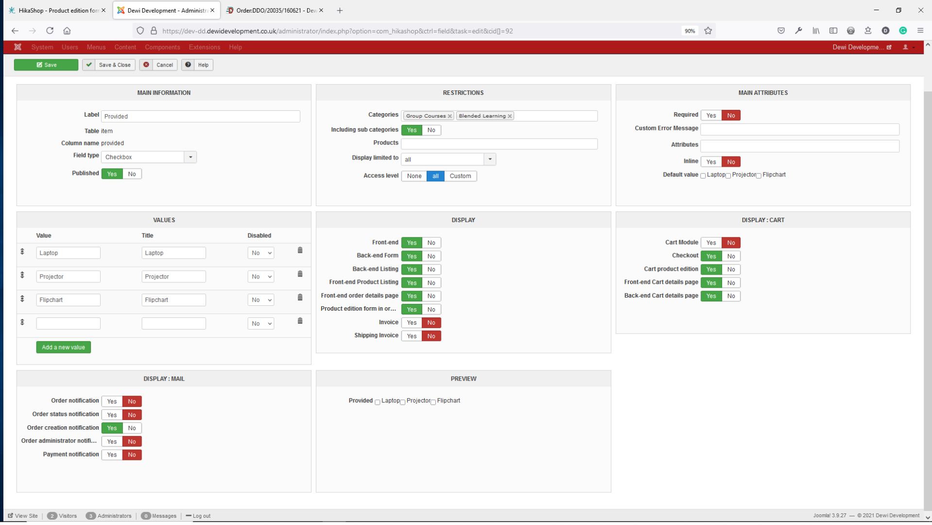$item_fields = $fieldClass->getFields('display:order_edit=1', $oldData, 'item', 'user&task=state');in the file administrator/components/com_hikashop/classes/order.php