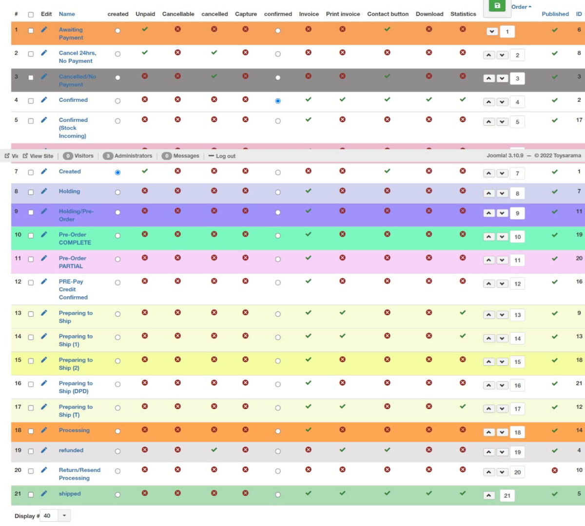 And I can see that in the System>Order statuses menu, you've configured the status Processing under the "Invoice" column (and other statuses we don't care for this example). The statuses created and Awaiting Payment are not enabled under that column.