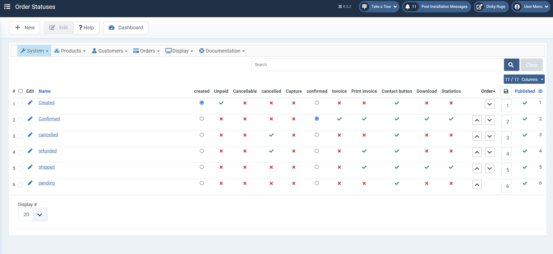 "And I think you want the "shipped" status to be enabled under the "invoice" column so that when an order goes from shipped to refunded, the stock is given back."