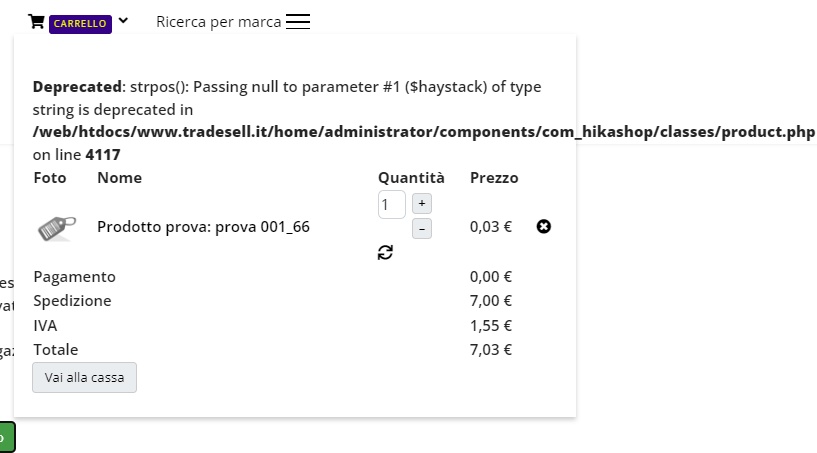 there is a specific product, a test item created to test the payment process, that trigger this message when visualizing the shopping cart